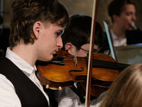 Feierlich eröffnete das Orchester unter der Leitung von Musiklehrerin Tabea Zimmermann den Konzertabend mit Jean-Joseph Mourets berühmtem Barockstück Fanfare Rondeau. Nach diesem gelungenen Auftakt spielte der Siebtklässler Tim Buske mit seiner Blockflöte aus dem zweiten Teil der Sonate in d-Moll von B. Marcello ein beeindruckendes Solo und berührte das Publikum durch seine ausdrucksstarke und filigrane Spielweise.