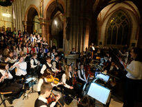Als das Orchester gegen Ende des Konzertabends Last Christmas spielte, erreichte die Stimmung im Fritzlarer Dom ihren Höhepunkt. Mit sichtbarer Freude und großer Leidenschaft spielten die Musikerinnen und Musiker den modernen Weihnachtsklassiker und entfachten beim Publikum große Begeisterung. Traditionell sangen zum Schluss des Konzertabends die Chöre und das Publikum zusammen das Adventslied Macht hoch die Tür.